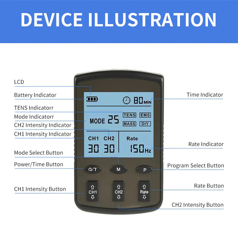 Dual Channel TENS & EMS Muscle Stimulation Device